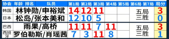 林钟勋,申裕斌3-0 松岛辉空 张本美和(14-12,12-10,11-5),两对组合在第一天的比赛中,全部都是3-0击败了对手,没有什么意外的话,第二小组晋级名单应该是日韩的这两对组合,但有意思的是,四人中除了林钟勋没有单打外,三人的单打都一轮游,这也就意味着四人就好好地专注混双吧!